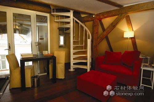為達(dá)到流體設(shè)計(jì)的前期規(guī)劃——將三棟十四世紀(jì)建筑綜合設(shè)計(jì)并使其連貫,對(duì)建筑師Martinus Schuurman與設(shè)計(jì)師Külli Salum來說可謂是前所未有的挑戰(zhàn)。畫廊、走道、樓梯與23間客房之間的通融性體現(xiàn)在設(shè)計(jì)過程中的細(xì)膩協(xié)作,有機(jī)的靈感與可共鳴的環(huán)境使設(shè)計(jì)師因如此的建筑而深深著迷。他們?cè)趷凵衬醽喺畬?duì)鉻、玻璃及塑料的用量限定范圍內(nèi),還是將每一建筑單體設(shè)計(jì)得獨(dú)一無二。高價(jià)聘請(qǐng)當(dāng)?shù)啬窘硨?duì)樓梯、窗檐以及各房間的大門進(jìn)行純手工雕繪這一壯舉轟動(dòng)一時(shí)。