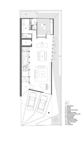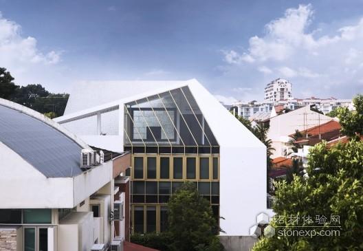 設(shè)計者運用的是最簡單最典型的房屋形狀,這樣一來,盡管內(nèi)部空間開闊,外面也不會顯得太占地,太龐大。建筑的平坦與城郊的中產(chǎn)階級聚集型住宅區(qū)形成對比。