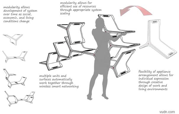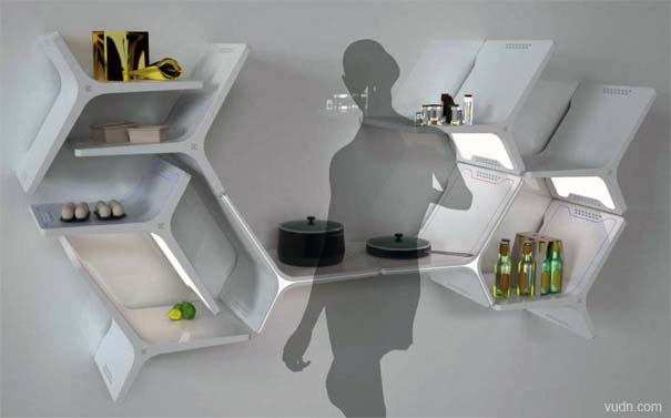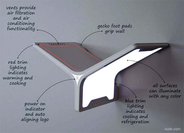 這是一種壁掛式的廚房用具系列,從冰箱,空調(diào),照明和烹飪模塊,你都可以隨意添加或選擇你喜歡的家庭適合模塊。每一個(gè)都是互不干擾的獨(dú)立模塊,但是看起來就像是一個(gè)網(wǎng)絡(luò)版塊,效率與華麗同在。