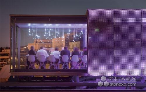 由于特殊的位置,就餐者可以將塞納河和艾菲爾鐵塔全景盡收眼中。在十八米長的整體建筑單體中,包括一個(gè)玻璃艙和一個(gè)覆蓋著中央烹飪區(qū)穿孔金屬屏幕兩大部分,僅可容納十二個(gè)人同時(shí)就餐。這兩部分在法國北部的瑟堡船廠建造然后運(yùn)輸過來,并在巴黎東京宮博物館的屋頂組裝而成。集裝箱式的空間雖然緊湊卻并不擁擠,結(jié)構(gòu)輕便結(jié)實(shí)。“臨時(shí)性”無疑是Nomiya餐廳最重要的一個(gè)概念點(diǎn)。事實(shí)上,Nomiya餐廳僅僅營業(yè)到今年六月。相對(duì)于動(dòng)輒五十年、一百年壽命的建筑來講,僅有一年多壽命Nomiya餐廳更像是一個(gè)裝置藝術(shù)品。日本建筑師安藤忠雄曾說過,真正的建筑藝術(shù)品,經(jīng)過千百年的時(shí)間湮滅之后,人們依然不遠(yuǎn)千里前去尋求、瞻仰、贊嘆。在現(xiàn)代社會(huì)的生活中,快餐式的生活越來越成為主流。建筑物通常耗資巨大,建造時(shí)間動(dòng)輒幾年,往往被認(rèn)為是存留最久的人造物,似乎天生就與“臨時(shí)性”這個(gè)字眼搭不上邊。Nomiya餐廳從設(shè)計(jì)之初就拋棄了存留久遠(yuǎn)的可能性。集裝箱式的設(shè)計(jì)、吊車安裝的方案使它大大降低了建造成本,玻璃、輕鋼等建造材料也并非是造價(jià)不菲的材料,且易于拆裝和重復(fù)使用。況且,短暫的存在時(shí)間、僅僅十二個(gè)的座位,“限量供應(yīng)”使得Nomiya餐廳相比其它設(shè)計(jì)精彩的餐廳更有吸引力。畢竟,在東京宮當(dāng)代藝術(shù)中心露臺(tái)就餐閑聊的機(jī)會(huì),并不是總有的。這一切使得Nomiya餐廳擁有了成為臨時(shí)性建筑的可能。建筑不再是印象中龐大沉重的物體,而是變得可以像“旅行帳篷”一樣,輕便且“四海為家”。