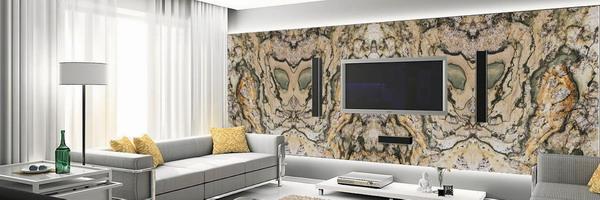 在搭配上,設計師黃先生建議簡約風格的家具,可以根據(jù)顏色來選擇特色石材。如果居室是以米黃為主色調,選用安踏金、金木等會更有溫馨的感覺。喜歡自然的家居主人可用天然稀少的綠色或藍色石材,如特色石材藍海、田園風光、愛爾蘭等。而大氣紋路的特色石材則可營造家居粗獷的感覺。值得提醒的是,特色石材一般比較珍稀,因其大部分材質為半寶石、石英石、和玉石等高貴材質,所以價格偏高,且紋路和色彩變化較大,適宜于起畫龍點睛之用,不適宜整間房大面積使用。