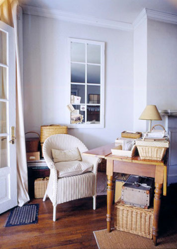 桌面上堆滿的并不是辦公的文件,而是針線之類的小物品,坐在藤椅上看一會小說,再做一會兒針線活,那是多么的閑適。