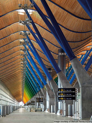 甚至羅杰斯建筑事務(wù)所最引人注目的機(jī)場(chǎng)設(shè)計(jì)之一,馬德里“巴拉哈斯機(jī)場(chǎng)4號(hào)航站”(Barajas Airport Terminal 4)——在2005年完工,是以一個(gè)沒(méi)有通過(guò)“希思羅機(jī)場(chǎng)5號(hào)航站”那樣的咨詢階段的設(shè)計(jì)為基礎(chǔ)設(shè)計(jì)的。