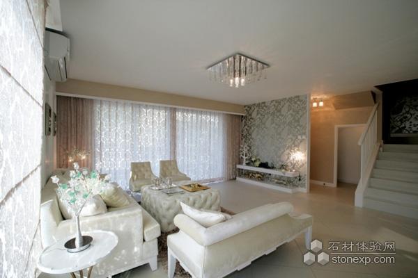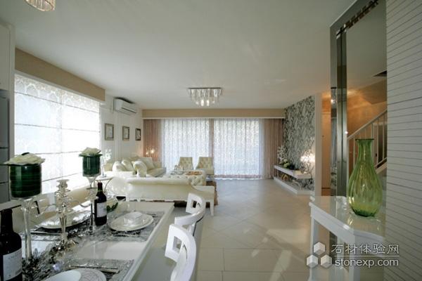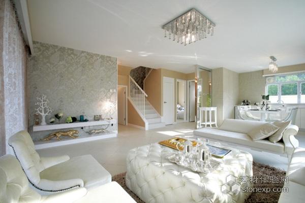 客廳里剔透的水晶燈飾,雕花窗簾、墻面裝飾以及沙發(fā)茶幾十分的和諧,簡(jiǎn)約而不簡(jiǎn)單的裝飾充滿新古典主義的味道。