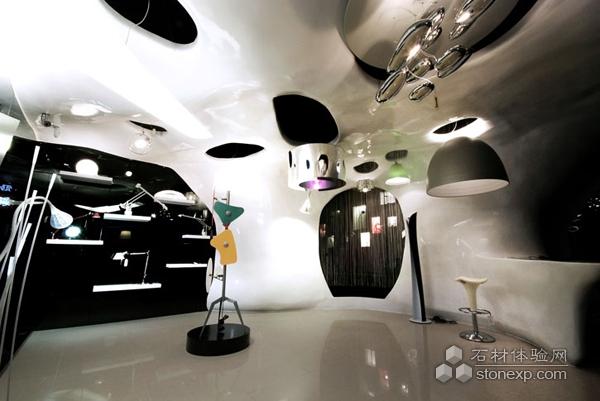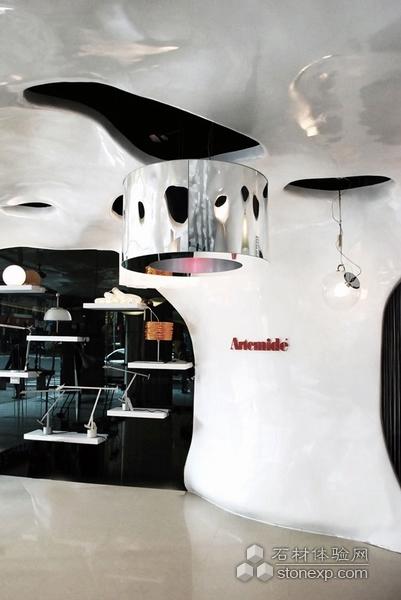 對(duì)于Artemide理念來(lái)說(shuō),照明是身心愉悅的來(lái)源。CROX 精心裝飾了臺(tái)北第一家Artemide旗艦店,并秉持著明亮的概念和希望的憧憬,詮釋了光明打破烏云的場(chǎng)景。從概念到設(shè)計(jì)的領(lǐng)悟,CROX運(yùn)用了強(qiáng)有力的光重纖維增強(qiáng)聚合體(FRP)來(lái)創(chuàng)造任意的可能,涵蓋了頂面到墻面的任意可能。懸掛的燈創(chuàng)造了夢(mèng)幻的氣氛。雕刻作品光滑的漆面將這個(gè)大空間陷入一種錯(cuò)覺。商店第二層安裝了一面巨大的玻璃,通過(guò)其自身的魅力和優(yōu)美的曲線招來(lái)更多的視線。