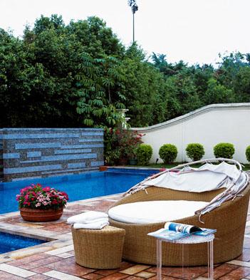 如果說大自然中花草的芬芳最讓人動情,那書香則更讓人怡情。在最放松的地方,離不開書本的愉悅。了解屋主對書的嗜好,楊實在每個可以休息的地方,都給書留了一席之地,床邊有長長的書廊,客廳陳列柜上放著書,寬長的浴缸旁放著書,泳池藤椅旁還是書。在書的世界里,盡情享受心靈的“世外桃源”。