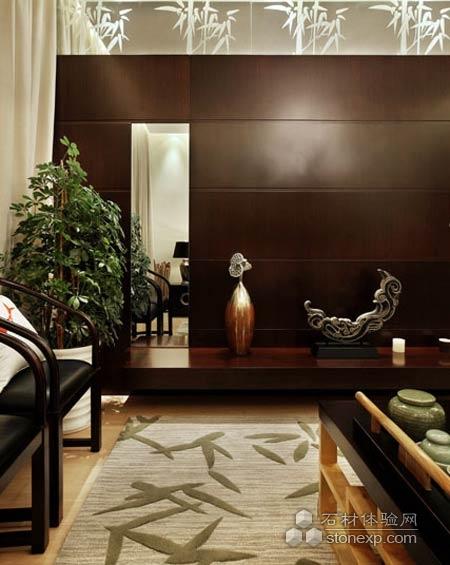 東方主題的藝術(shù)陳設(shè),可以淡雅如君子,可以貴氣如帝王;可以輕描淡抹,可以濃妝重墨,各具風(fēng)騷,不一樣的中國(guó)風(fēng),一樣的精彩!此單位的陳設(shè)設(shè)計(jì)選擇了清新與優(yōu)雅,注重人文氣息的營(yíng)造,儒雅中貴氣暗涌。利用陳設(shè)布置在原木材質(zhì)的大空間里呈現(xiàn)若隱若現(xiàn)的禪意,是對(duì)中國(guó)道家文化的一種新式演繹??蛷d是整個(gè)空間陳設(shè)設(shè)計(jì)最具表現(xiàn)力的功能區(qū)域,米色沙發(fā)與單位沙發(fā)的組合擺放形式取自中國(guó)古代居室布置格局對(duì)稱擺放,沙發(fā)上那些體態(tài)各異的抱枕悄悄繡入中式標(biāo)記符號(hào),概念來(lái)自古中式的上衣衣襟和姑娘們用的肚兜,具有濃厚的人文氣息,變化的織物質(zhì)感和色彩搭配注入了時(shí)代感。