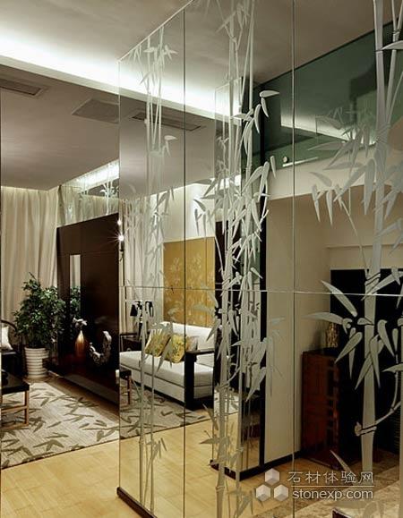 客廳的中式簡(jiǎn)化造型幾上,茶杯在幾片綠葉的襯托下,哄染了清靜無(wú)為的道家思想,茶亦有道,禪意十足。相對(duì)于此處濃烈的人文氛圍營(yíng)造,餐廳的陳設(shè)擺放以素雅為主。餐桌椅擺放位置利用玻璃鏡面形成景觀呼應(yīng),表現(xiàn)了小空間的體量擴(kuò)展,又以小件的搭配擺設(shè)組構(gòu)相應(yīng)的生活氣氛。中式元素的引用是表現(xiàn)主題思想的一個(gè)手法,客廳的時(shí)尚原創(chuàng)地毯,取自竹紋圖案,與鏡壁呼應(yīng)。在色調(diào)上主要以沉穩(wěn)的調(diào)子為主,并作局部突出的點(diǎn)綴,統(tǒng)一于潛藏的中式環(huán)境中。新東方讓空間有了詩(shī)情畫(huà)意、韻律美感,倡導(dǎo)了生活藝術(shù)的新潮流。
