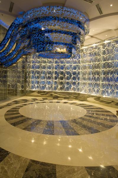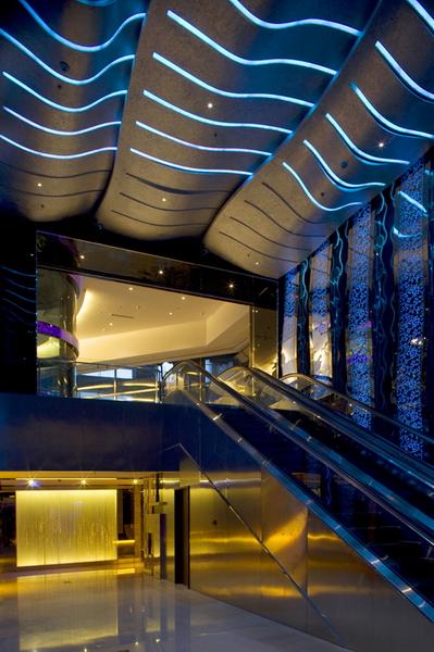 主要材料:不銹鋼板激光沖孔、玻璃導板+LED、金屬簾+LED、鋁塑板、防火板、石材。