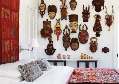 業(yè)主收集的土著部落的面具展示在客臥床邊的墻上,從阿根廷帶回的毯子掛在背景墻上,另臥室散發(fā)著異域原始生活的淳樸氣息。