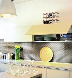 廚房里面的櫥柜,擺放了一些餐具,特別是這幾只具有特色的高腳杯,是設計師特地挑了好久才買的。