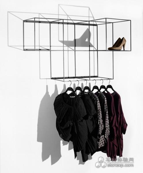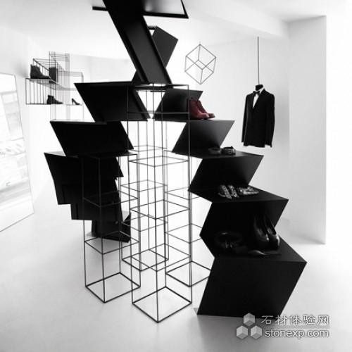 瑞典設(shè)計(jì)師Guise設(shè)計(jì)的時(shí)裝店,位于斯德哥爾摩。其特色是大部分貨架都是從天花板翩然而下,前面幾張圖的陳列架個(gè)人特別喜歡,有點(diǎn)像手風(fēng)琴的樣子,黑色的薄黑金屬做成的陳列架煞有個(gè)性。