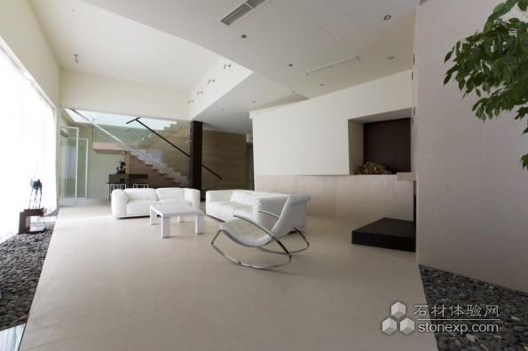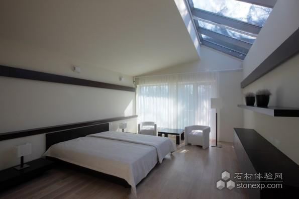項(xiàng)目受狹小場(chǎng)地的限制,周圍老樹還要被加以保留。村莊內(nèi),房屋都靠得很近,所以入口立面幾乎沒有窗戶,主房間沖著場(chǎng)地的內(nèi)側(cè),在那里建筑的兩個(gè)翼結(jié)構(gòu)形成一個(gè)溫馨的小院落。房屋沿著南側(cè)立面建造,以獲得最大光照。在雙層起居室上面是一個(gè)樓頂花園?;▓@的一個(gè)出口與二樓臥室區(qū)的走廊相連。