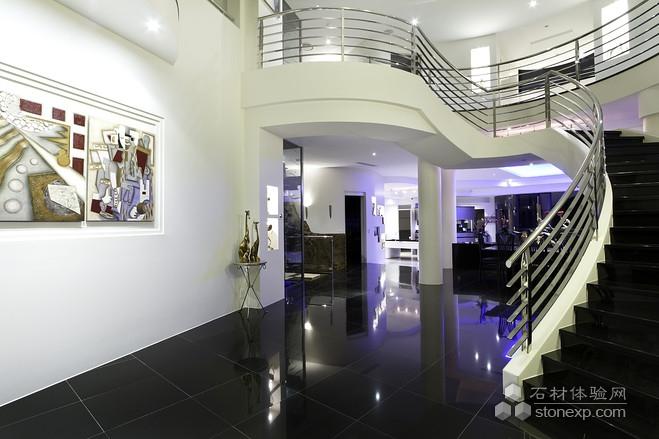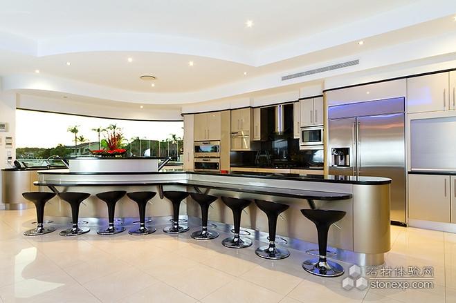 這棟住宅面積約20,300平方英尺(約1,890平方米),屋內(nèi)有挑高天花板,弧形墻壁,室內(nèi)為開放式布局。廚房里有一張約18英尺(約5米)長的吧臺式長桌,桌面覆以黑金沙花崗巖。[page]
