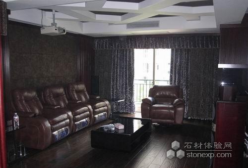 因此加上兩個(gè)房間的面積打造成一間客廳一間家庭影院。使整個(gè)空間更加大氣、寬敞。
