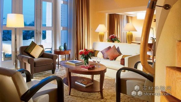 宏偉建筑與奢華搖滾風(fēng)格的結(jié)合,給人一中神秘的感官?zèng)_擊,從400間客房和套房都是單獨(dú)命名,給人的視覺享受都是不同的。整個(gè)建筑在外觀,大廳等位置都用到多款石材,是石材用于酒店工程的成功案例之一。