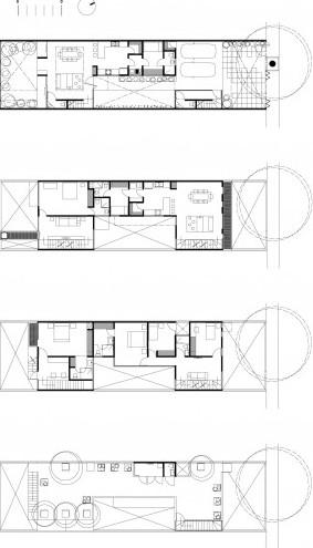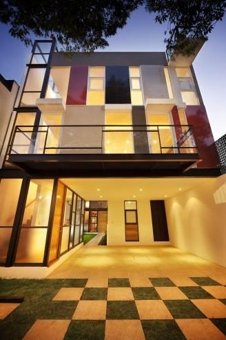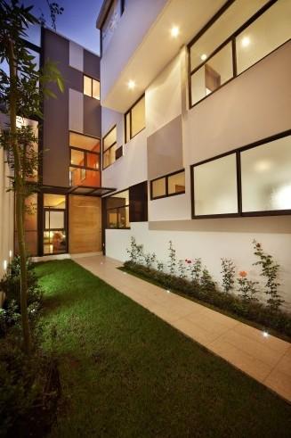 這個住宅位于墨西哥城,緊鄰湖水,場地狹長。住宅包括兩個部分,它們互相交織,互相穿插,最大限度地利用可用空間,最終在擁擠的城市空間中制造出一個巨大的立方體。設(shè)計選材獨(dú)特,立面上的材料產(chǎn)生出一種明亮感和不透明感,增加了光影效果。