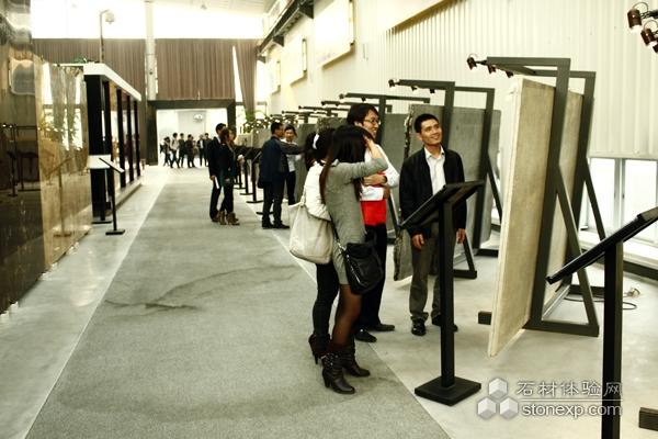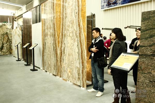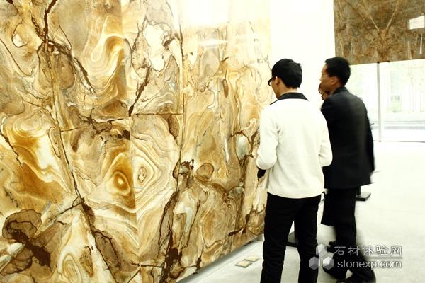 一塊紋理獨(dú)特的石材大板 引起了參觀者的注意