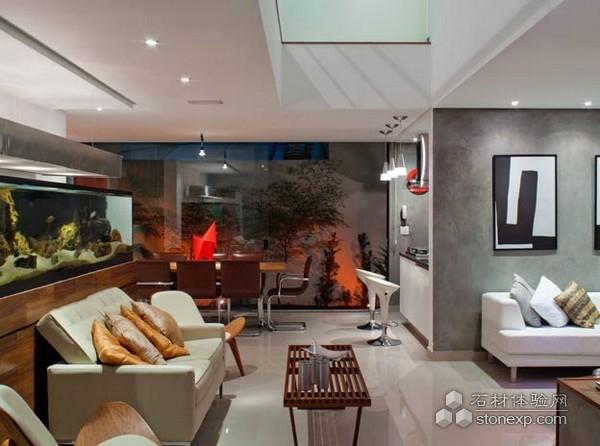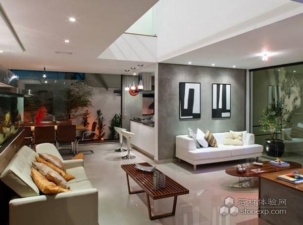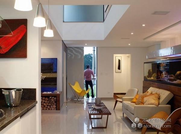 坐落于巴西圣保羅市的房屋Mirante do Horto,其設(shè)計(jì)主要考慮到身處的熱帶環(huán)境。不再有巴西這個(gè)亞熱帶地區(qū)特有而常見的灰泥和瓦片的應(yīng)用,建筑師們?nèi)《捎玫氖且环N從高等現(xiàn)代主義中得來靈感的設(shè)計(jì)理念。不過,人們或許也會(huì)覺得,現(xiàn)代主義的運(yùn)用在巴西并非罕見,它在那些上層精英階層或權(quán)貴人士之中頗為流行。