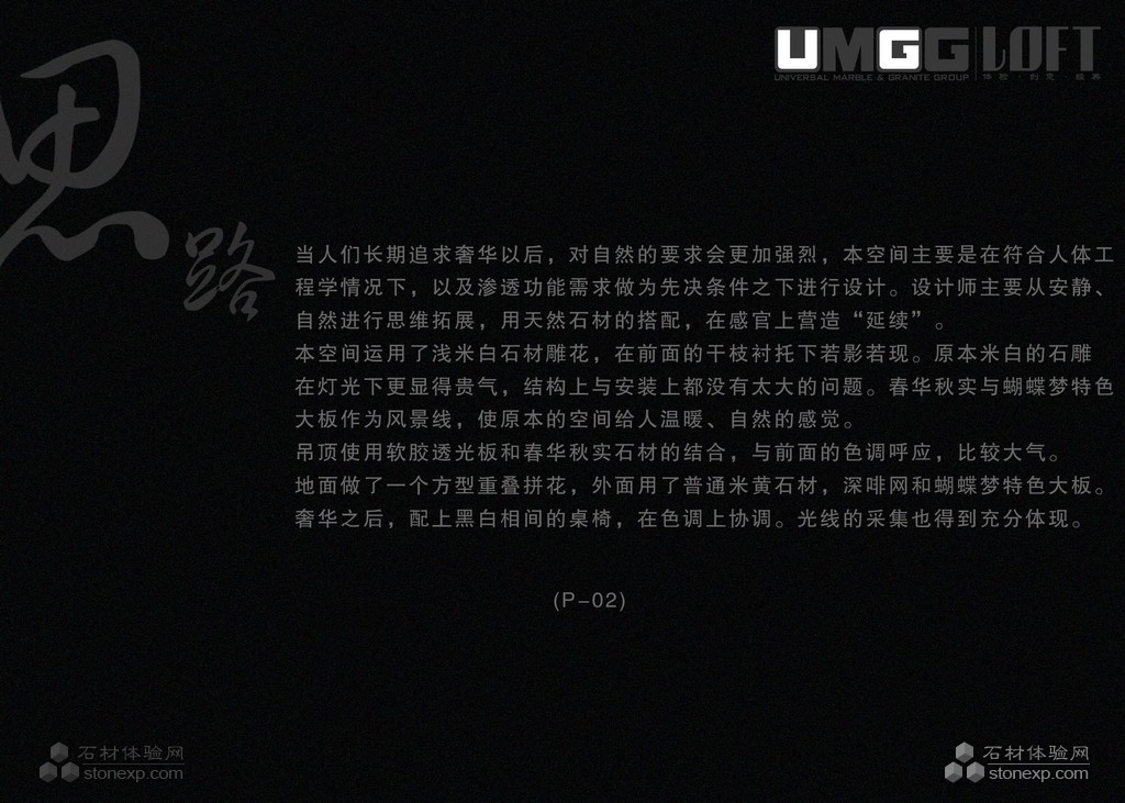 簡單描述: | 當(dāng)人們長期追求奢華以后,對自然的要求會更加強(qiáng)烈,本空間主要是在符合人體工程學(xué)情況下,以及滲透功能需求做為先決條件之下進(jìn)行設(shè)計(jì)。設(shè)計(jì)師主要從安靜、自然進(jìn)行思維拓展,用天然石材的搭配,在感官上營造“延續(xù)”。 本空間運(yùn)用了淺米白石材雕花,在前面的干枝襯托下若影若現(xiàn)。原本米白的石雕在燈光下更顯得貴氣,結(jié)構(gòu)上與安裝上都沒有太大的問題。春華秋實(shí)與蝴蝶夢特色大板作為風(fēng)景線,使原本的空間給人溫暖、自然的感覺。吊頂使用軟膠透光板和春華秋實(shí)石材的結(jié)合,與前面的色調(diào)呼應(yīng),比較大氣。地面做了一個(gè)方型重疊拼花,外面用了普通米黃石材,深啡網(wǎng)和蝴蝶夢特色大板。奢華之后,配上黑白相間的桌椅,在色調(diào)上協(xié)調(diào)。光線的采集也得到充分體現(xiàn)。 |