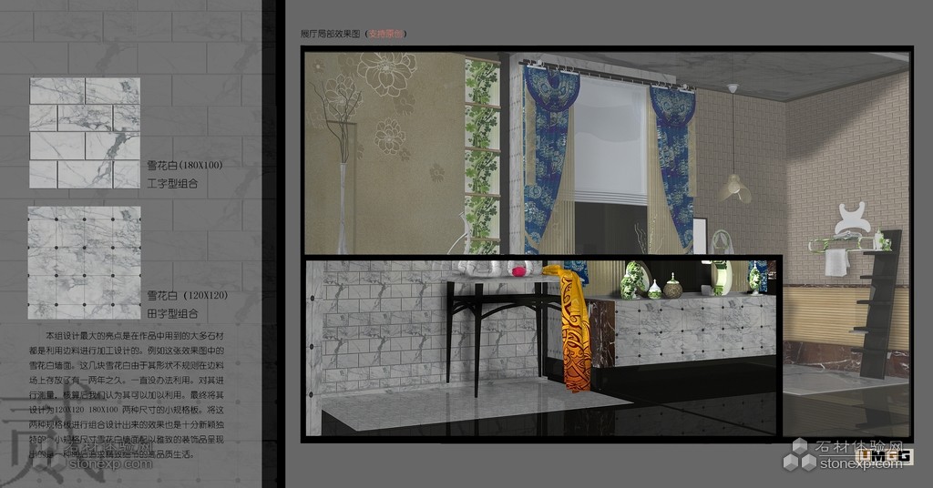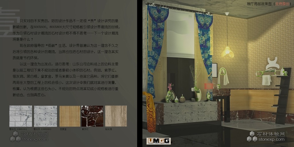 簡單描述: | 現(xiàn)在政府提倡的“低碳”生活,設(shè)計界普遍認(rèn)為這一理念不久之后將引領(lǐng)的各種設(shè)計的潮流,當(dāng)然也包括石材的設(shè)計。這一理念其實質(zhì)就是節(jié)約環(huán)保。 以這一理念為出發(fā),進(jìn)行思考:山東公司邊料廠上的邊料主要是以前工程切下來的不規(guī)則的或是較小體積的石材。例如,紫羅紅、銀灰洞、黑白根、皇家金、羅馬米黃以及一些其它品種、將它們重新再用大型的工程上的機(jī)會很小。這次設(shè)計中我們就是對其進(jìn)行測量核算。認(rèn)為根據(jù)這些石頭大小、不規(guī)則的特點將其切成小規(guī)格板進(jìn)行重新組合,也別具匠心。 |