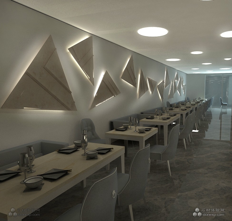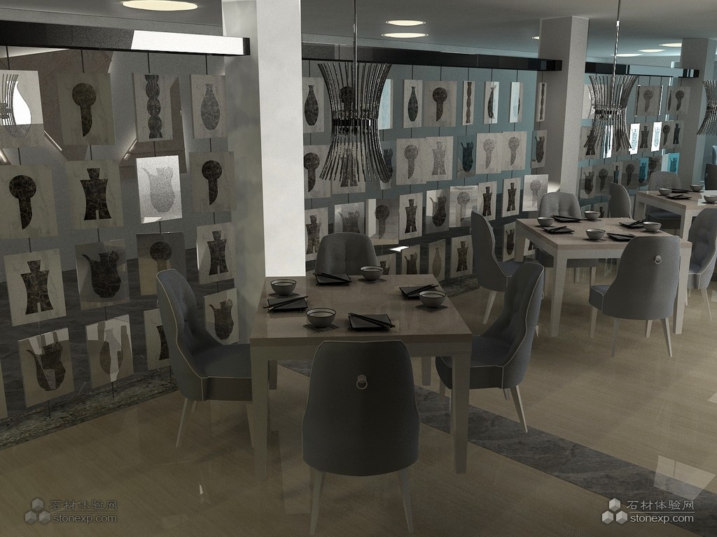簡單描述: | “大理·石”是這家餐廳的名字,集合了中西的設(shè)計風格,并不像傳統(tǒng)的中式餐廳。有著濃厚的中國傳統(tǒng)裝飾材料。這次主要運用的是大理石,其中包括了:雪花白、金網(wǎng)花、木紋石、羅馬米黃和銀鼎灰。 大理石很多時候都大量運用在工程里做墻面和地面的裝飾,但是在這家餐廳,除了地面運用了木紋石和銀鼎灰做地面裝飾外,還運用了雪花白和金網(wǎng)花的邊角料做了一道屏風,金網(wǎng)花鑲嵌在雪花白里面造出各個朝代的瓷器,每一塊串起來像風鈴一樣貌似能動,但其實不然,但卻有種流動的感覺,卻又蘊藏著中國的歷史傳奇。 |
