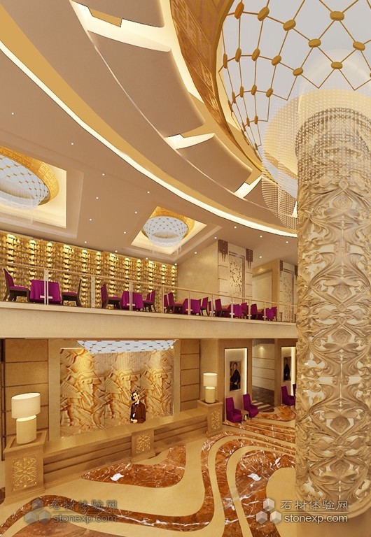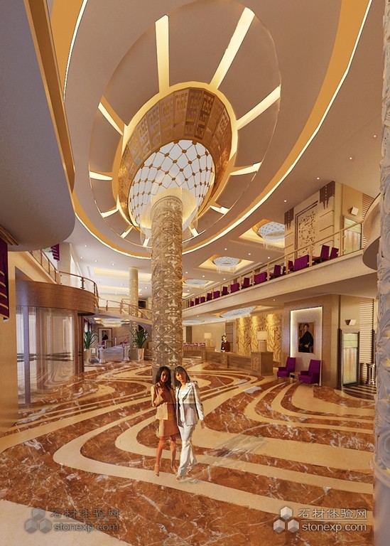 簡單描述: | 水,以生命的形式在我們的身體中涓涓流動。水是人,人也是水,水在人體中流淌,人在水周圍生存。人是水的心臟,水是人的脊梁。在冥冥之中我們注定與水有著密不可分的聯(lián)系。老子曾經(jīng)說過:“天下之柔莫過于水,而攻堅強者莫之能勝,以其無以易之,弱之勝強,柔之勝剛,天下莫不如。” 這是一個酒店大堂室內(nèi)空間,主要石材應(yīng)用貝雅紅、索菲特金、莎安娜米黃,地面采用流水造型拼貼漸變環(huán)表現(xiàn)手法體現(xiàn)其流動靈躍之美。通過對吧臺、墻面、電梯效果面的處理,使整體方案燈光,材質(zhì)色調(diào)都各自得到了體現(xiàn),形成了一個過度的對比,非常自然,渾然一體,體現(xiàn)其華美金碧輝煌之感。 |
