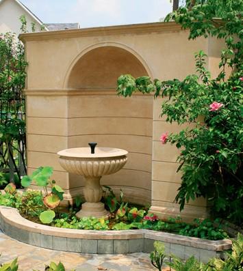 簡約造型的噴泉會(huì)為美式的花園點(diǎn)綴出更多貴族氣,尤其使之成為園子以及對(duì)稱的中心,大宅范兒既出。