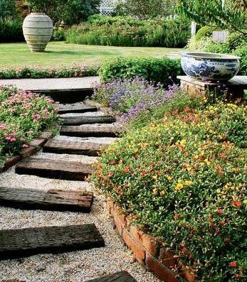 如果花園的面積較大,石子小路未免有些不相稱,但如果全砌成水泥,則又少了花園的樂趣。均勻擺放的枕木路則是個(gè)好辦法,再在周圍撒些石子,這樣看起來不僅大氣,更節(jié)約木材。而木頭在歲月的打磨下還能呈現(xiàn)出不同的質(zhì)感和狀態(tài)。