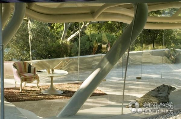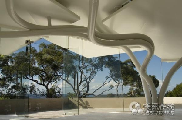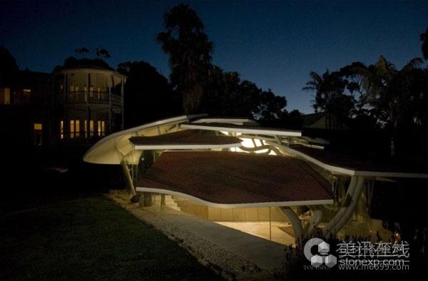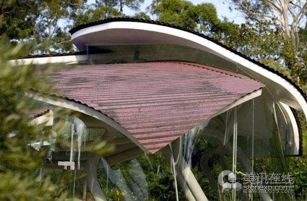 住宅屋頂?shù)脑O(shè)計(jì)概念明顯是源自于自然,而這種設(shè)計(jì)也延伸到室內(nèi),室內(nèi)有一個(gè)藤蔓般的結(jié)構(gòu)系統(tǒng)。建筑師說(shuō):“設(shè)計(jì)概念來(lái)自于自然,室內(nèi)和室外都采用了這種概念設(shè)計(jì)。這種設(shè)計(jì)和住宅周?chē)沫h(huán)境非常搭配。”