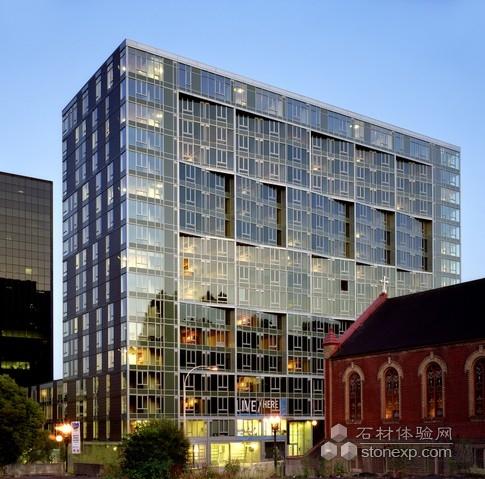 這個公寓樓共包含16層,位于美國波特蘭城市中心區(qū),它的出現(xiàn)意味著一種新的城市可持續(xù)居住模式。設(shè)計追求的是精而不是多,364個住宅單元緊湊排布,巧妙的細節(jié)和高效的環(huán)境系統(tǒng)為大樓增添一種空間感。