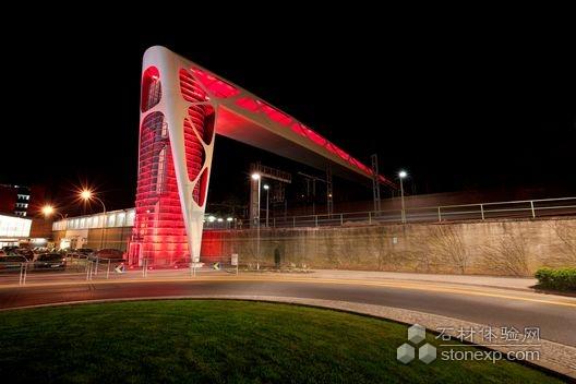 這個(gè)天橋的含義是創(chuàng)造城市中心區(qū)與綠色空間之間的直接聯(lián)系。獨(dú)立的體量是通過(guò)整齊簡(jiǎn)約的設(shè)計(jì)風(fēng)格展現(xiàn)的。它的氣質(zhì)和周圍嘈雜的環(huán)境形成明顯發(fā)差。天橋的美感使此地變得極為獨(dú)特,使附近車站都增色不少。