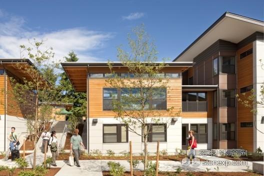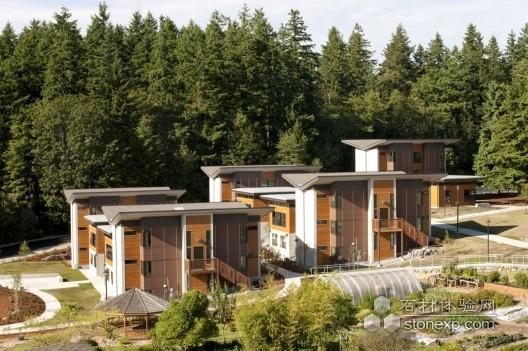 這個(gè)學(xué)生村共包含11個(gè)三層獨(dú)立木屋,共可居住132名學(xué)生。設(shè)計(jì)感很強(qiáng),注重綠色環(huán)保,還榮獲了LEED白金認(rèn)證。項(xiàng)目可節(jié)省百分之三十四的能量,并通過團(tuán)隊(duì)協(xié)作及規(guī)劃將百分之九十七的建筑垃圾進(jìn)行了轉(zhuǎn)化。