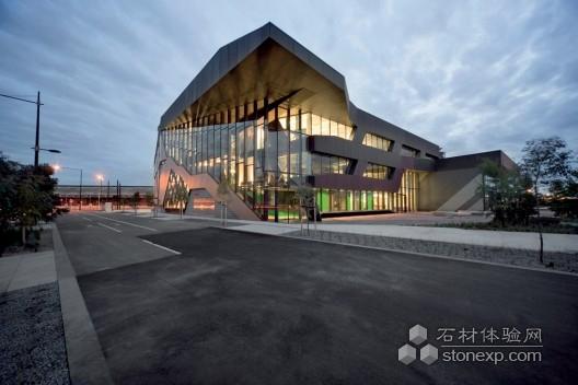 這是澳大利亞堪干白特曼高等技術(shù)學(xué)院的汽車中心,它容納一個(gè)訓(xùn)練中心,一個(gè)展覽中心,還有教室和辦公空間。設(shè)計(jì)試圖與周圍商業(yè)城市景觀相融合,并盡量將建筑與本地的汽車歷史相呼應(yīng)。