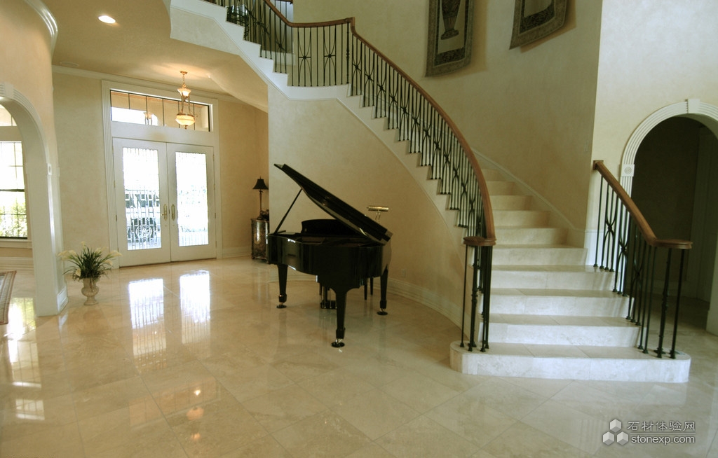 寬敞的大堂空間,樓層之間采用旋梯設(shè)計(jì)。