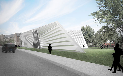 扎哈·哈迪德(Zaha Hadid)為密歇根州立大學(xué)設(shè)計的“伊萊和伊迪特-布羅德藝術(shù)博物館”(Eli and Edythe Broad Art Museum),在落后于原計劃一年之后,將于3月16日在該校的“東蘭辛市校園”(East Lansing)破土動工。這個項目在2012年完成之后,將是扎哈-哈迪德在美國設(shè)計的第二幢建筑。她在美國設(shè)計的第一幢建筑物是2003年建成的俄亥俄州辛辛那提市的“路易斯與理查羅森塔當(dāng)代藝術(shù)中心”(Lois and Richard Rosenthal Center for Contemporary Art)。