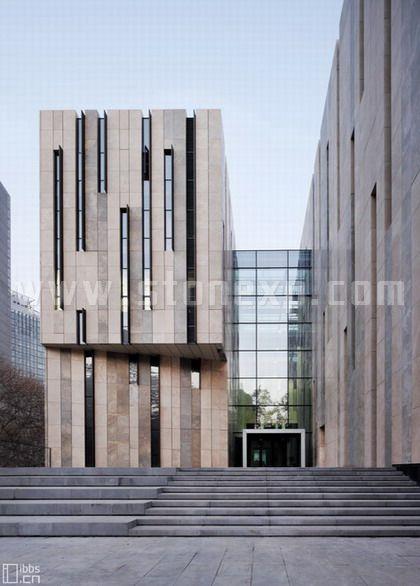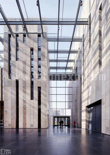 天然的石灰石材料和狹窄的不規(guī)則布置的窗口掩蓋了美術(shù)館的層數(shù),加強(qiáng)了美術(shù)館的整體形象。同時(shí),交替出現(xiàn)石材和窗子的金屬板之間的在立面上創(chuàng)造出節(jié)奏。結(jié)構(gòu)框架和微妙的玻璃屋頂由總部位于斯圖加特的布勞尼根德國工程師們合作完成。