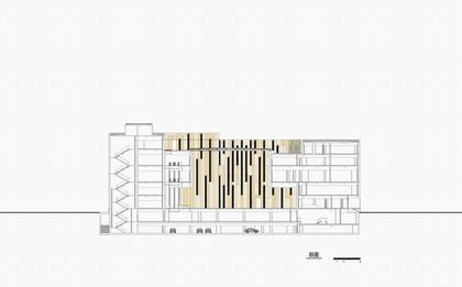 這兩個(gè)相互關(guān)聯(lián)的U 形體量創(chuàng)建一個(gè)輕玻璃屋頂覆蓋的中庭空間。17 米高的入口空間在兩個(gè)主要入口處變窄,鏈接到美術(shù)館的兩個(gè)體量和引導(dǎo)旅客。