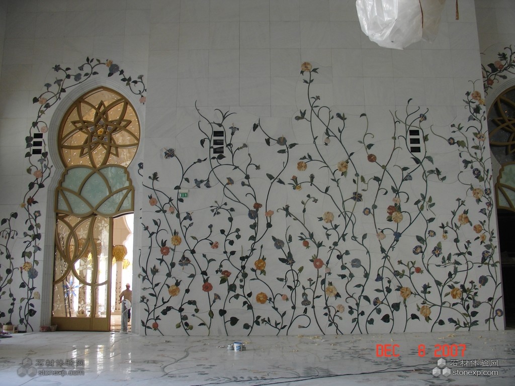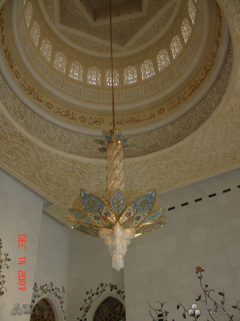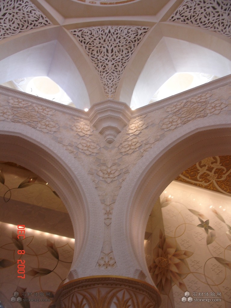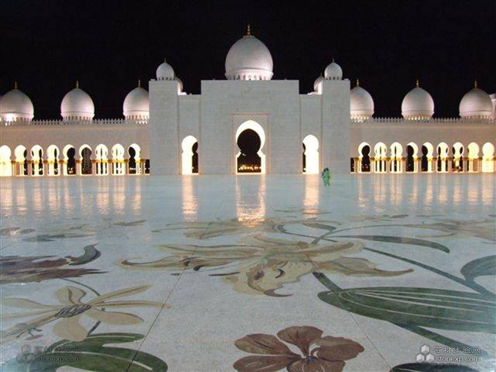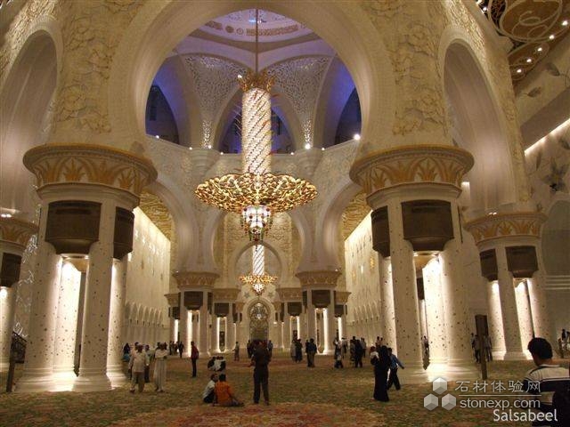 世界上最大的清真大廟。為紀(jì)念阿聯(lián)酋開(kāi)國(guó)總統(tǒng)扎耶德而興建,并以其名字命名。香港環(huán)球石材集團(tuán)將貝殼鑲嵌入石材工藝圓柱,將傳統(tǒng)的水刀拼花從直線型實(shí)現(xiàn)到垂直流線型的變化,其工藝為國(guó)內(nèi)外首創(chuàng),這一技術(shù)已申請(qǐng)了國(guó)家發(fā)明專利。