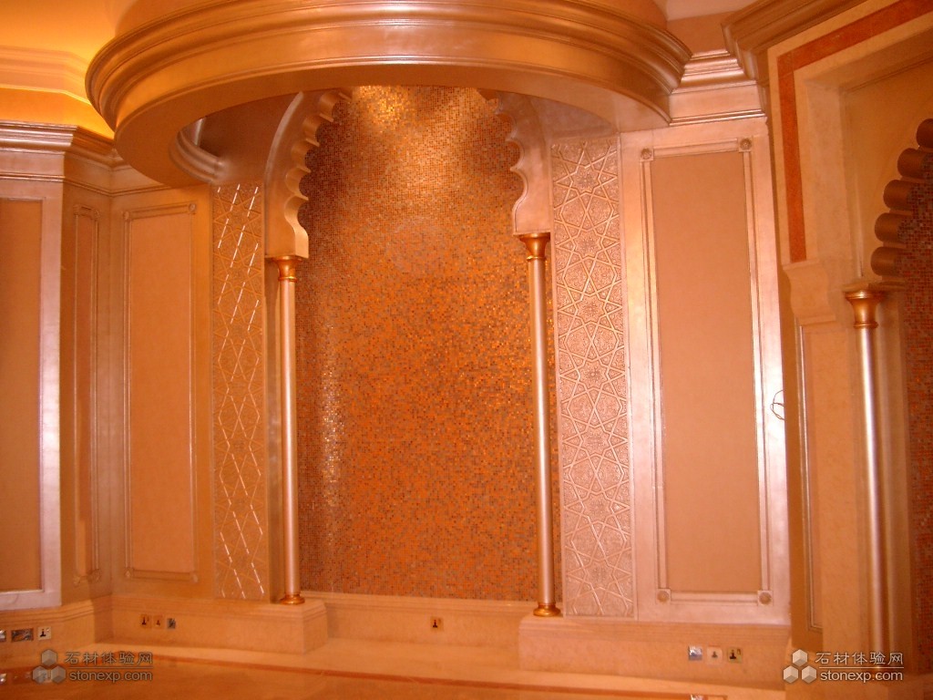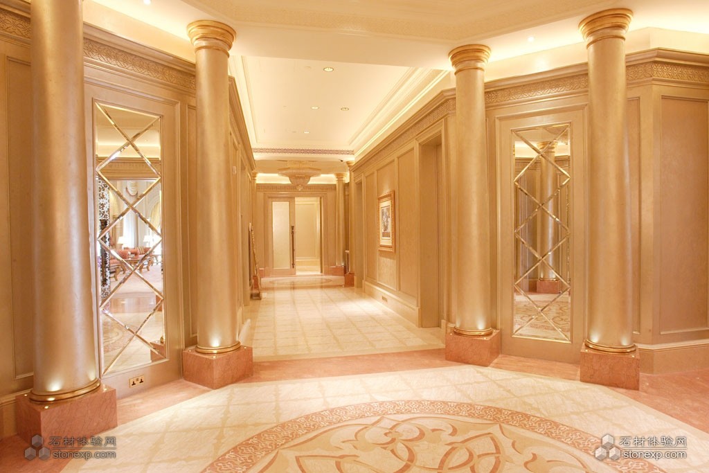 簡單描述: 阿聯(lián)酋皇宮酒店,被譽(yù)為世界最豪華、八星級的酒店,香港環(huán)球石材集團(tuán)在與意大利等國際公司激烈的競逐中,憑著突出的資源優(yōu)勢、技術(shù)優(yōu)勢、統(tǒng)籌大型與超大型工程石材的豐富經(jīng)驗(yàn)而中標(biāo),成為唯一入圍的中國公司。整個工程耗資逾30億美元,耗費(fèi)近150000立方米的進(jìn)口大理石,而酒店的核心部分,包括總統(tǒng)套房、部長套房、總統(tǒng)及部長Lobby、VIP入口等部位的裝飾石材均由香港環(huán)球石材提供。 |