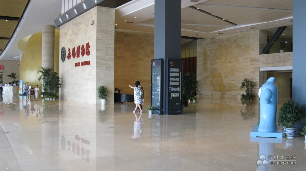 無錫博物院是石材工程中的又一經(jīng)典案例,做內(nèi)部裝修使用大量的天然石材,石材的應(yīng)用也較廣泛,使得整個博物院文化氣息濃厚,該工程主要石材用料為黃洞石。