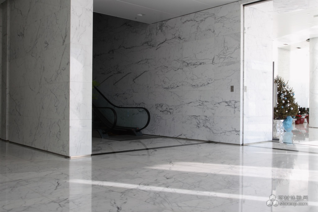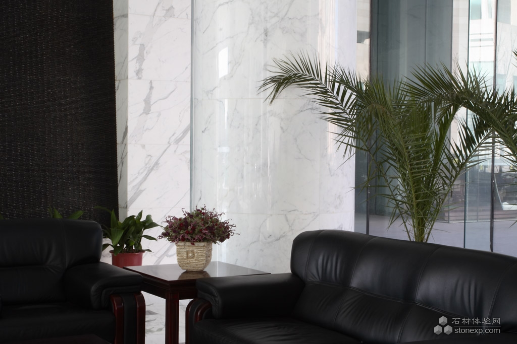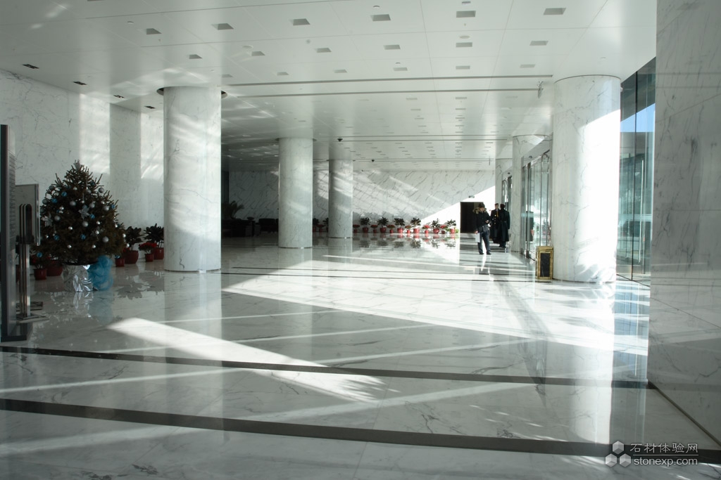 中國銀行最高管理機構(gòu),首層大堂全部選用環(huán)球石材的自有品種雪花白,雪花白選材晶瑩剔透,不追紋,紋路表現(xiàn)出草書的寫意,暗合淡雅的品味,獲得銀監(jiān)會主席和設(shè)計師的高度認(rèn)可。