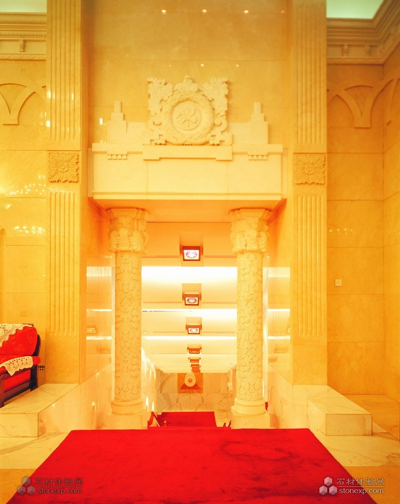 富麗堂皇的人民大會(huì)堂香港廳,在97年香港回歸前順利完成工程建造裝修,其主廳內(nèi)裝潢的石材部分,弧形拱墻面、花線、水刀地面拼花及墻面地面板材,均由環(huán)球石材集團(tuán)加工并安裝。其完美的效果、優(yōu)質(zhì)的服務(wù)得到了中央領(lǐng)導(dǎo)及 各界人士的廣泛贊譽(yù)和肯定。