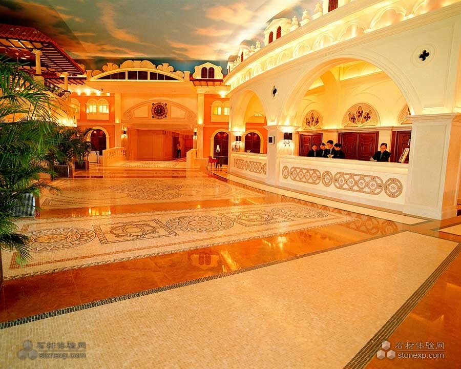 簡單描述:大理石馬賽克產(chǎn)品完美融合文藝復興和歐洲后現(xiàn)代主義的建筑風格,以威尼斯文化為主題進行裝飾。中國大陸檔次最高的「皇冠假日」酒店之一。馬賽克拼花,為酒店營造出富麗堂皇并具異域情調(diào)氛圍,成為酒店最大的亮點,是目前國內(nèi)馬賽克產(chǎn)品最具代表性的經(jīng)典之作。此工程獲得全國“魯班獎”。 了解馬賽克工藝及設計應用,點擊專題“石材馬賽克工藝介紹及設計應用” |