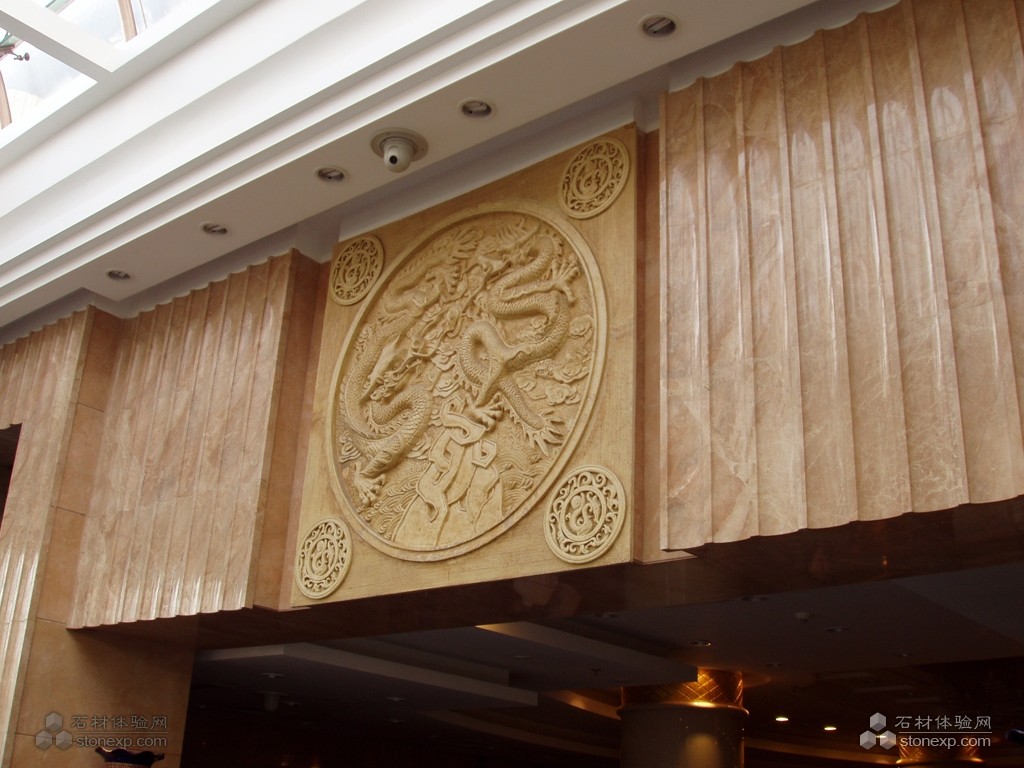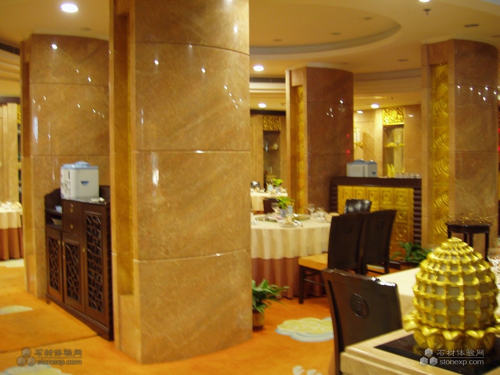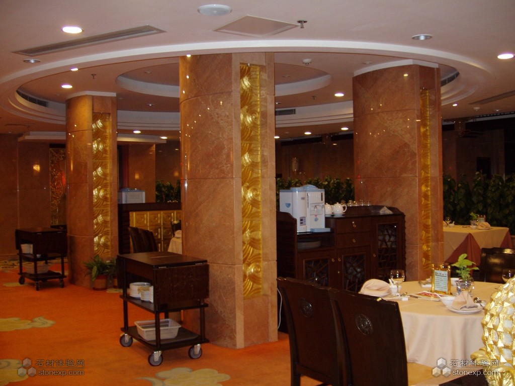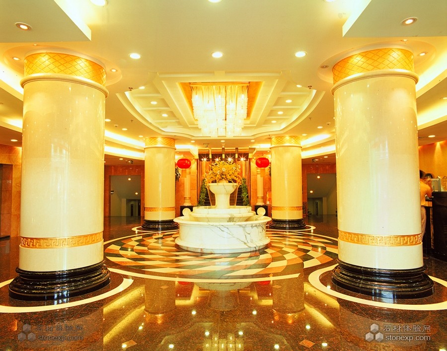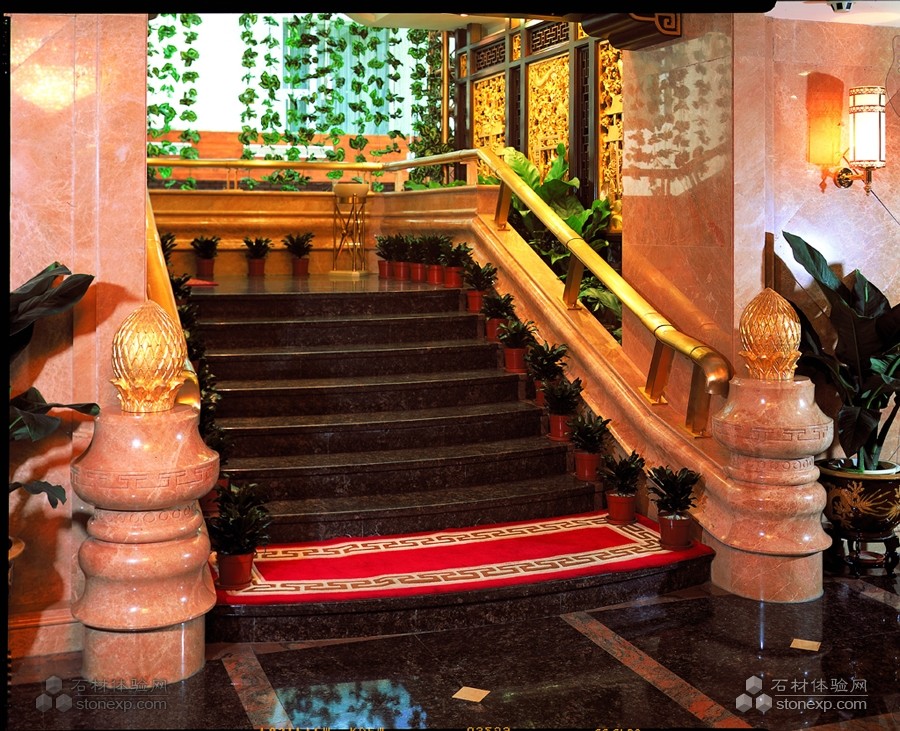 在北京金悅酒家這一工程中,大堂拼花、風(fēng)水球、陽光廳石材屋頂及圓柱、橢圓柱、實(shí)心柱、雕刻、樓梯攔河石線等石材工藝得到淋漓盡致的表現(xiàn),北京金悅酒家通過利用黑金色天然石材的高貴和紅色天然石材的熱情,展現(xiàn)了傳統(tǒng)中國風(fēng)格與現(xiàn)代豪華地完美結(jié)合。