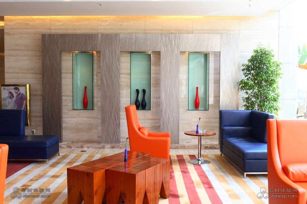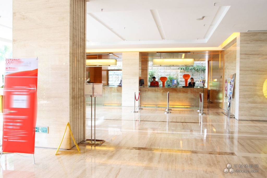 深圳博林酒店是一家四星級的高檔酒店,其主要石材原料由環(huán)球石材集團有限公司提供,所用的天然石材為:白窿石、黃窿石、加州金麻。