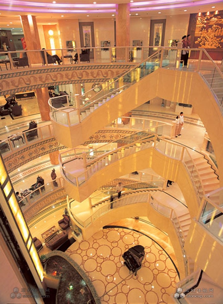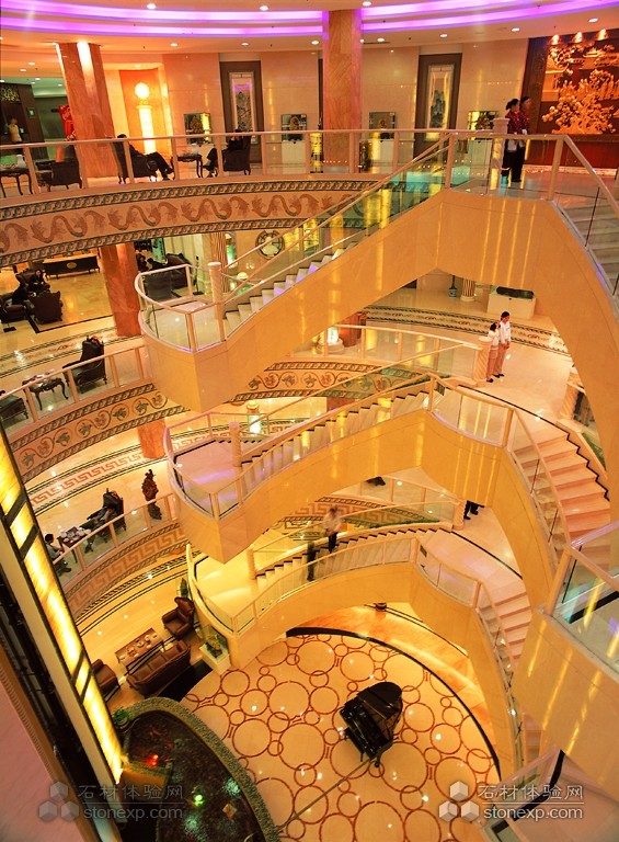 體現(xiàn)工藝難度的地方:旋轉(zhuǎn)樓梯、扭紋柱、地毯拼花