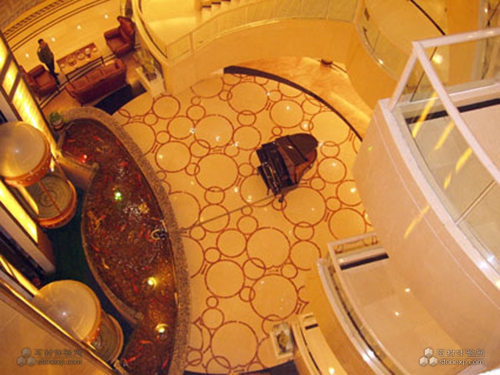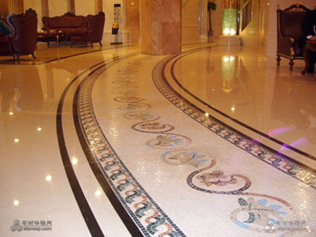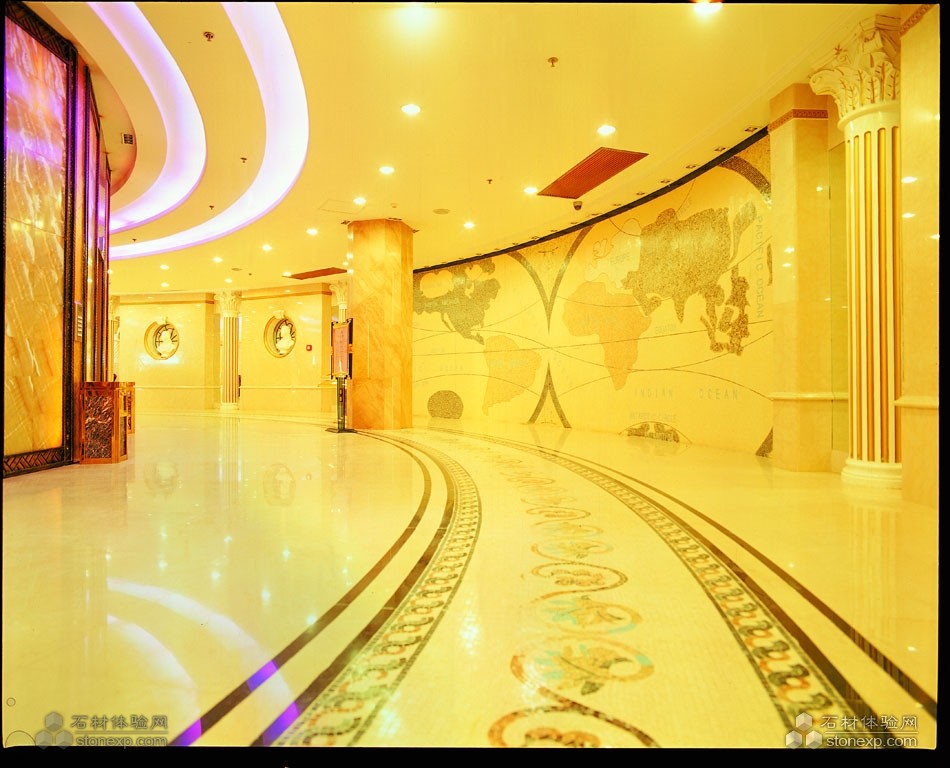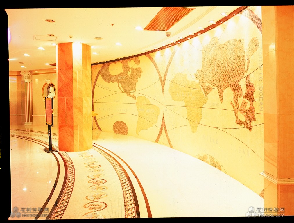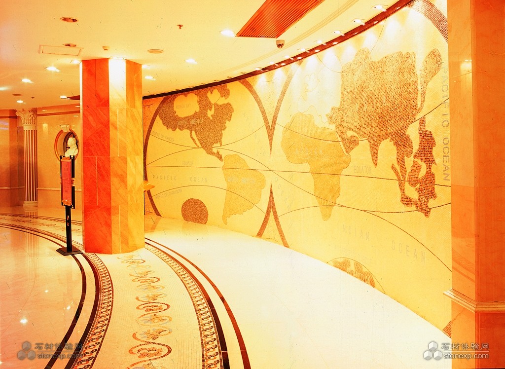 石材總體色調(diào):米黃色(用料莎安娜米黃、馬賽克)