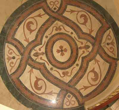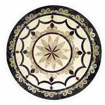 石材拼花在現(xiàn)代建筑中被廣泛應用于地面、墻面、臺面等裝飾,以其石材的天然美(顏色、紋理,材質(zhì))加上人們的藝術(shù)構(gòu)想“拼”出一幅幅精美的圖案。