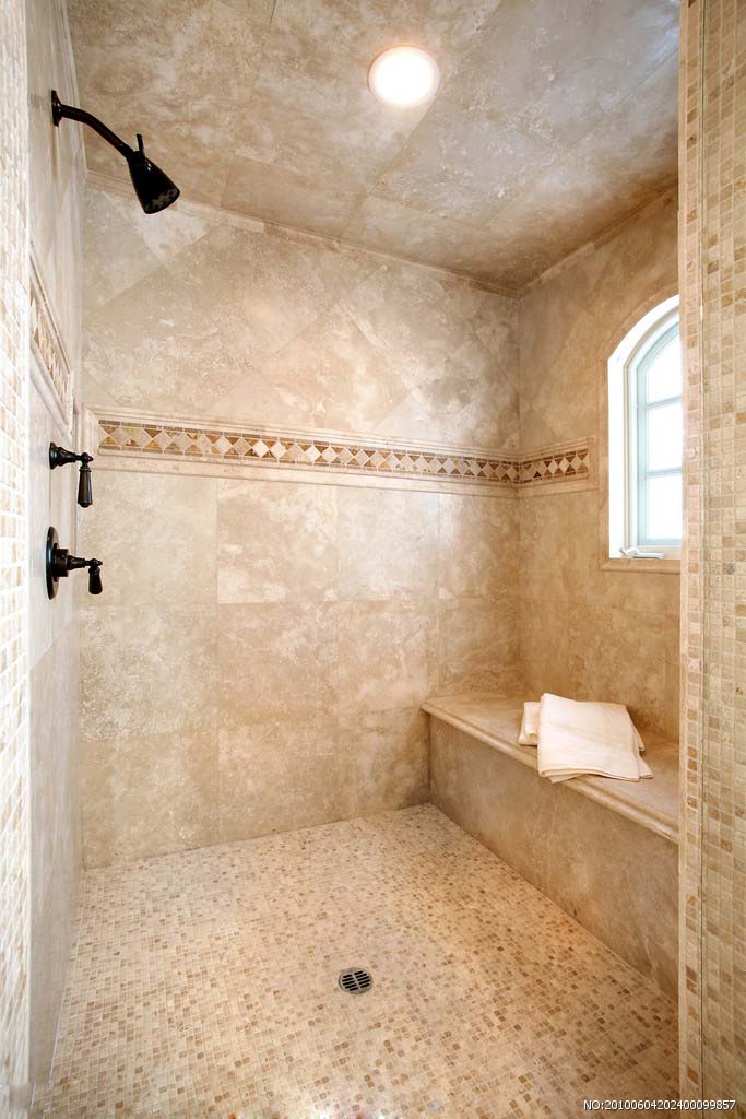衛(wèi)生間:米黃石材墻面和馬賽克地面